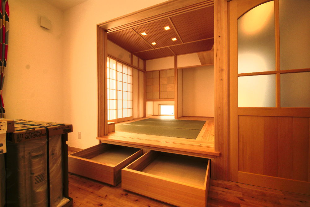 二階は寝室と子供部屋の他に、4帖のウォークインクローゼットと屋内洗濯物干し室を設置。
