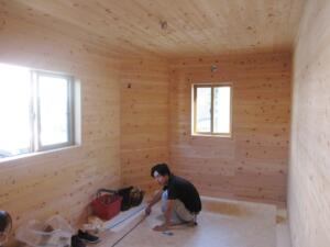 新築 ネコちゃんと暮らす家 上田市材木町 工事の様子3 左官 塗り作業