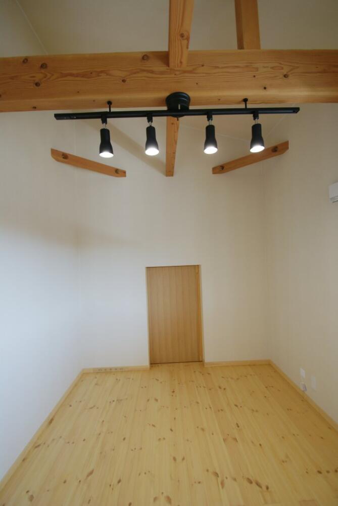 二階は勾配天井にして梁を見せ、解放感ある山小屋風のお部屋になっています。