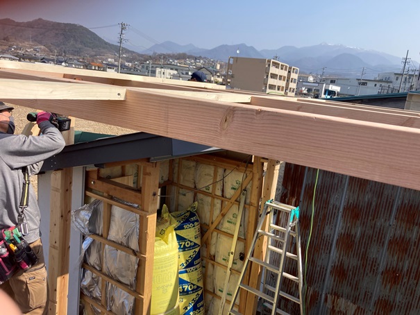 「ガレージ・ニシムラ」さんの移転リノベーション工事3リフォーム・リノベーションの現場 2024.05.31「ガレージ・ニシムラ」さんの移転リノベーション工事の様子です。 事務所となる建物の改修では、断熱材を充填しています。 須藤大工さんと花岡大工さんが頑張っています!(^^)! 外壁には防水透湿シートを張り、新しく窓を設置しています。