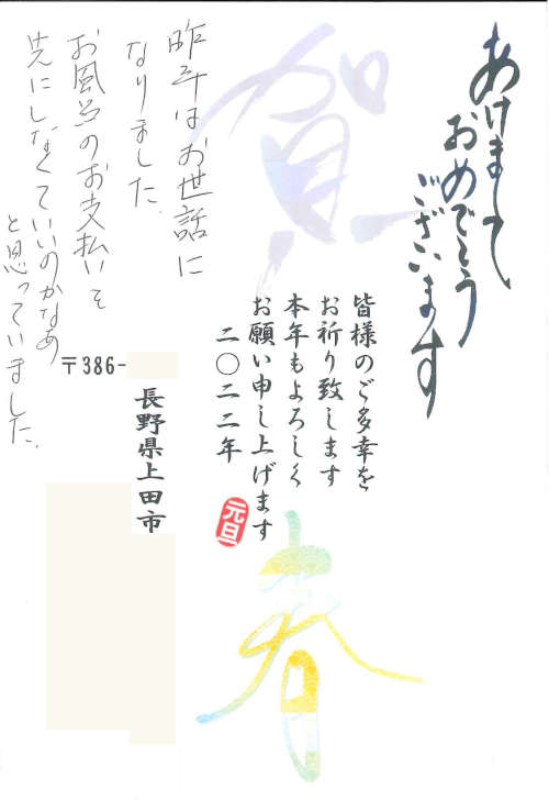 年賀状を頂きました2022年賀状 2022.01.23 2022.01.06今年頂いた年賀状をいくつかご紹介いたします。 毎年楽しく見させていただいております。どうもありがとうございます♪※プライバシー保護のための修正を行ってあります。